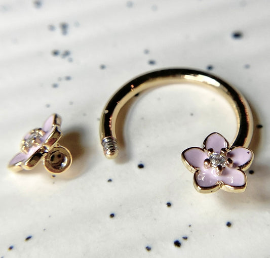 1pc Pink Enamel Flowers Gold Circular Barbell Horseshoe Lip Nipple Septum Ring