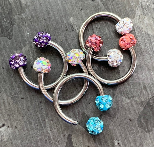 1 Piece Crystal Paved Ferido Balls Horseshoe Circular Septum Ring - 16g, 8mm - Aurora Borealis, White, Pink, Blue or Purple!