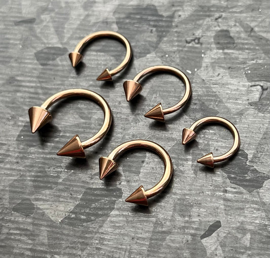 1 Piece Stunning Rose Gold Spiked Circular Barbell Horseshoe Ring!