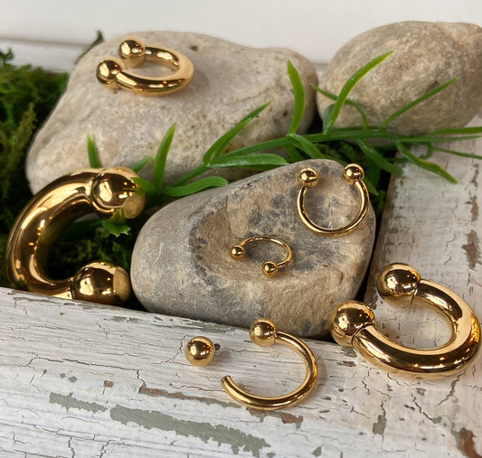 1pc Gold PVD over Solid G23 Titanium Circular Barbell Horseshoe Horse Shoe