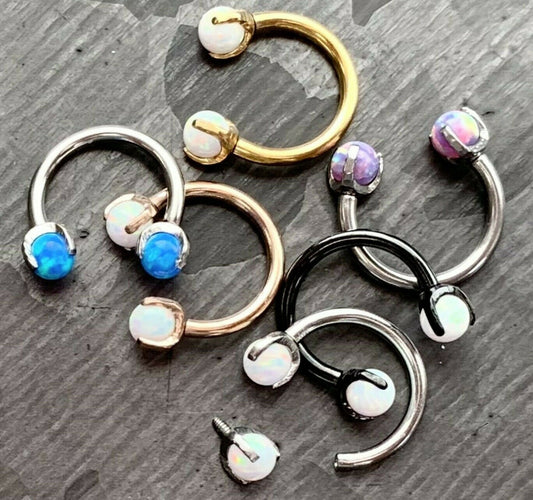1 Piece of Claw Set Opal Balls Circular Horseshoe Septum Ring - 16g - 8mm
