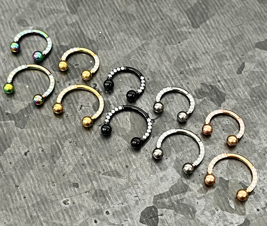 1 Piece Unique Titanium CZ Gem Sides Circular Barbell Horseshoe - 16g - 8 or 10mm