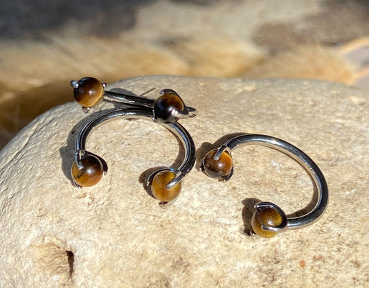 1 Piece Solid Titanium Stone Circular Barbell Septum Ring -in Natural Amethyst, Black Onyx, Green Aventurine, Obsidian, Opalite, Pink Opalite, Tiger Eye & Turquoise!