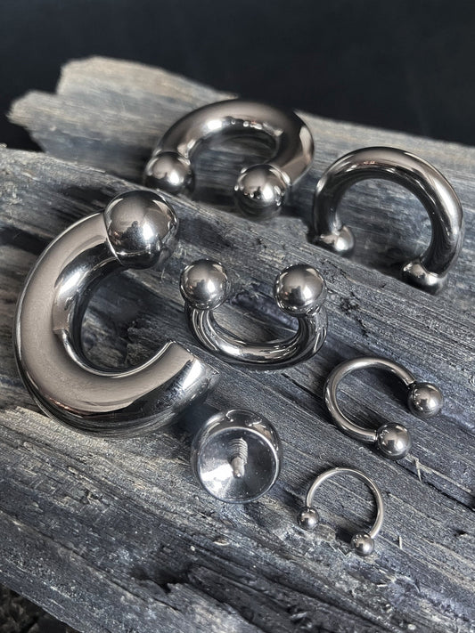 1 Piece Solid G23 Titanium Circular Barbell Internally Threaded Horseshoe Ring/Hoop - Gauges 12g (2mm) thru 2g (6mm)