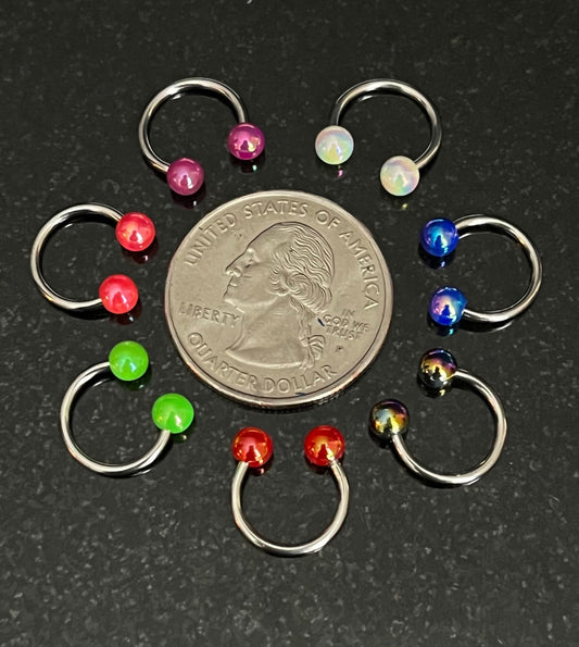 PAIR of Stunning Aurora Borealis Coated Circular Barbell Horseshoe Septum Ring - 16g - 8mm