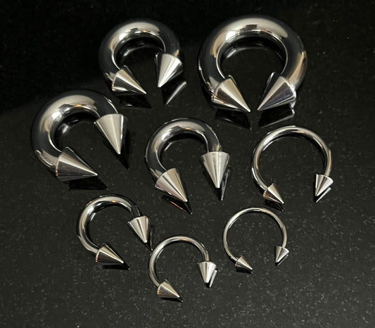 1 Piece Surgical Steel Circular Horseshoe Barbell with Spikes Ring - 18G thru 2g with Assorted Internal Diameter and Spike Size!!
