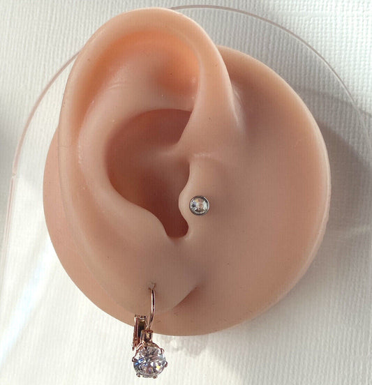PAIR of Round CZ Gem Earrings w/ Lever Back 20g 316L Stainless Steel