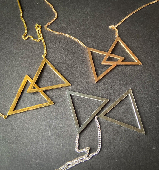 PAIR of Free Falling Chain Earrings w/ Bar & Open Triangle 20g Stainless Steel