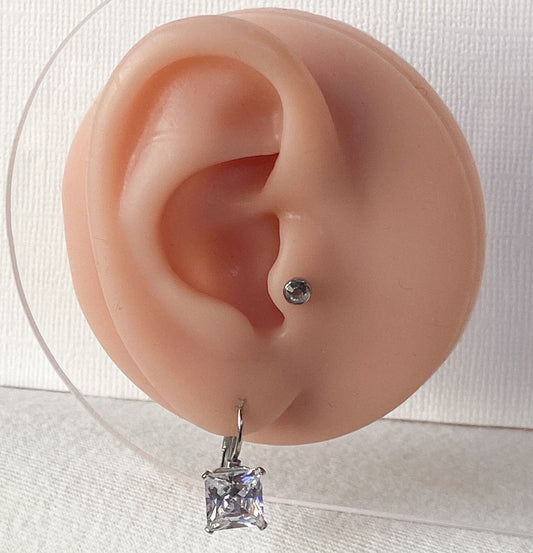 PAIR of Square CZ Gem Earrings w/ Lever Back 20g 316L Stainless Steel