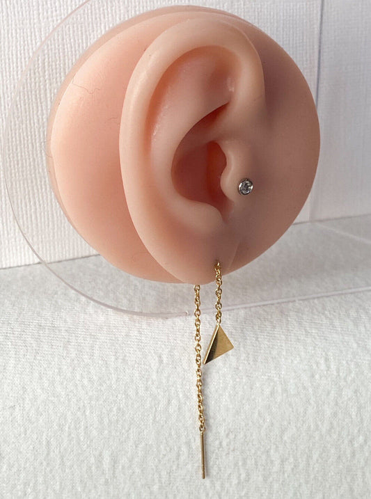 PAIR of Free Falling Chain Earrings w/ Bar & Solid Triangle 20g Stainless Steel