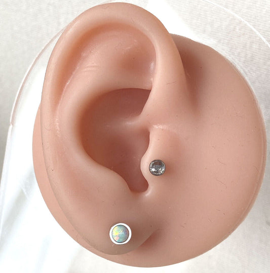 PAIR of Round Opal Bezel Set Earrings 20g 316L Stainless Steel