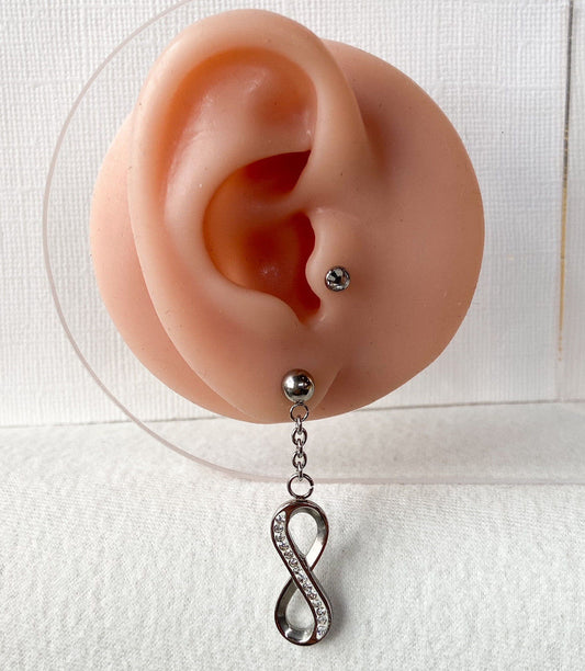 PAIR Ball Stud Earrings w/ CZ Gem Paved Infinity Dangles 316L Surgical Steel 20g