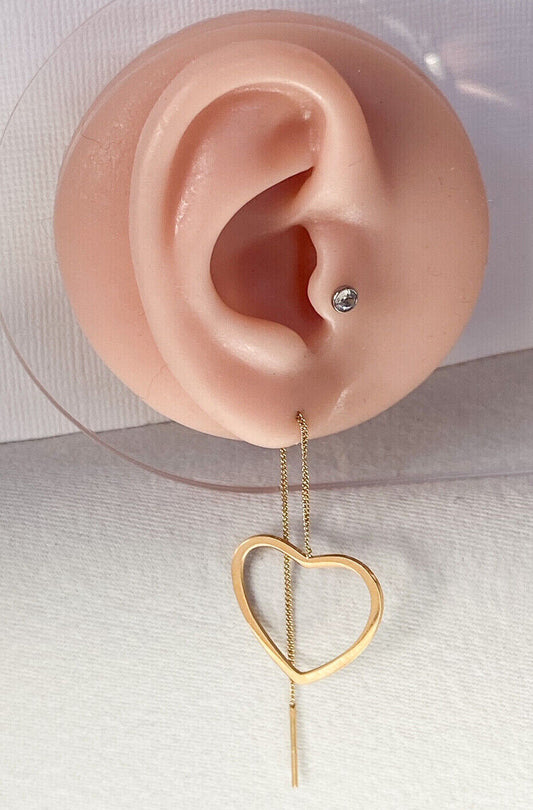PAIR of Free Falling Chain Earrings w/ Bar & Open Heart 20g Stainless Steel