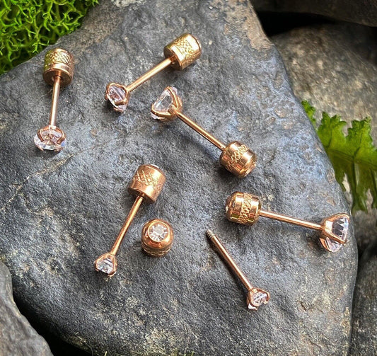 PAIR Prong Set CZ Gem Stud Rose Gold Earrings w/ Gem Centered Screw Back Steel