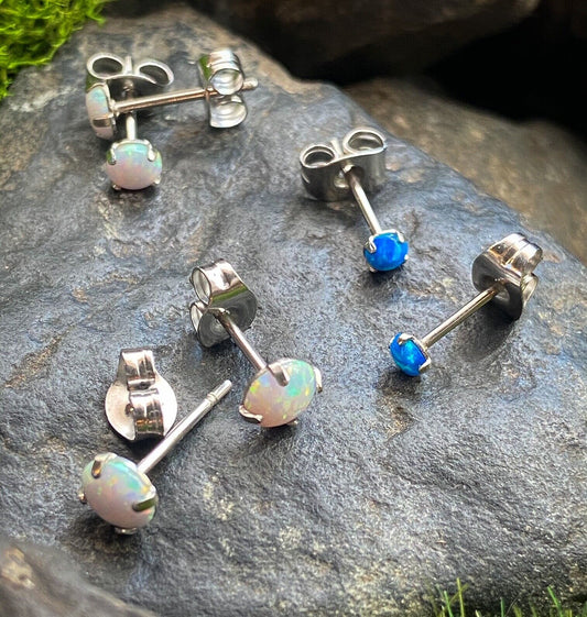 PAIR Prong Set Opal Earrings 316L Surgical Steel - choose from 2 colors, 3 sizes