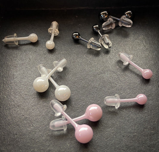 PAIR of All Ceramic Ball Stud Earrings - Choose 4mm or 6mm, Pink, Black or White
