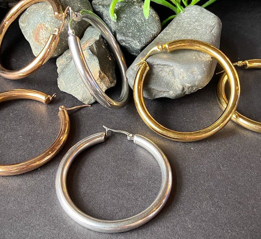 PAIR Thick Hollow Hoop Earrings 316L Stainless Steel 20g