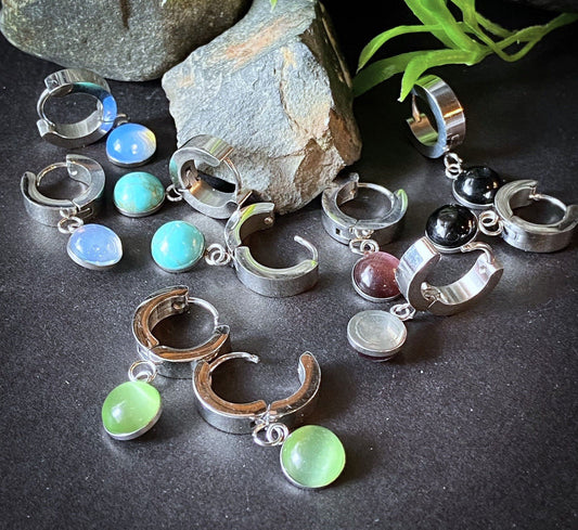 PAIR of Hinged Hoop Earrings Semi-Precious Stone Dangle 20g 316L Stainless Steel