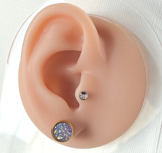 PAIR of Druzy Stone Set Stud Earrings 20g 316L Stainless Steel