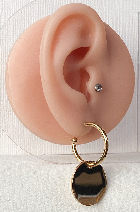 PAIR of Hoop Stud Earrings w/ Round Plate Dangle 20g Stainless Steel