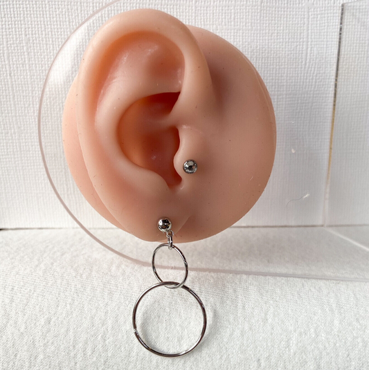 PAIR Ball Stud Earrings w/Double Hoop Dangles 316L Surgical Steel 20g