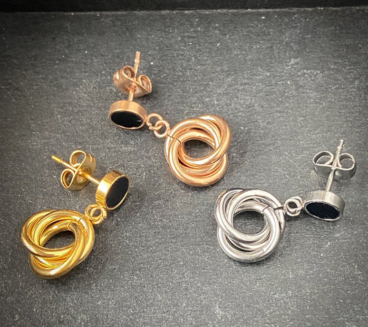 PAIR Stud Earrings Intertwined Circle Hoops IP Stainless Steel 20g