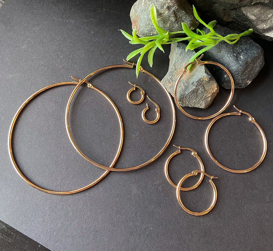 PAIR of Round Hoop Earrings 22g Rose Gold Ion Plated Stainless Steel