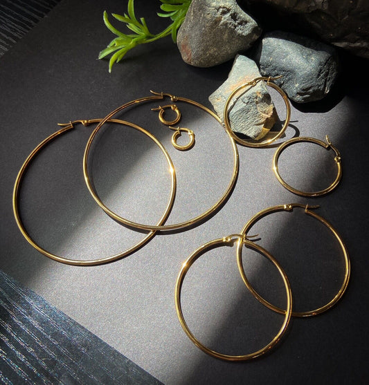 PAIR of Round Hoop Earrings 22g Gold Ion Plated Stainless Steel