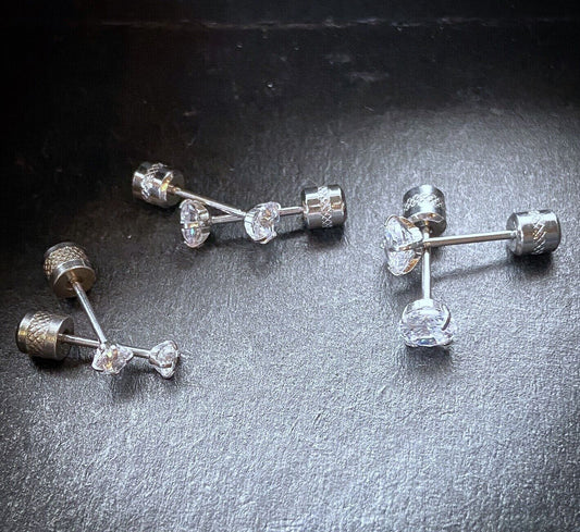 PAIR Prong Set CZ Gem Stud Earrings w/ Gem Centered Screw Back Surgical Steel