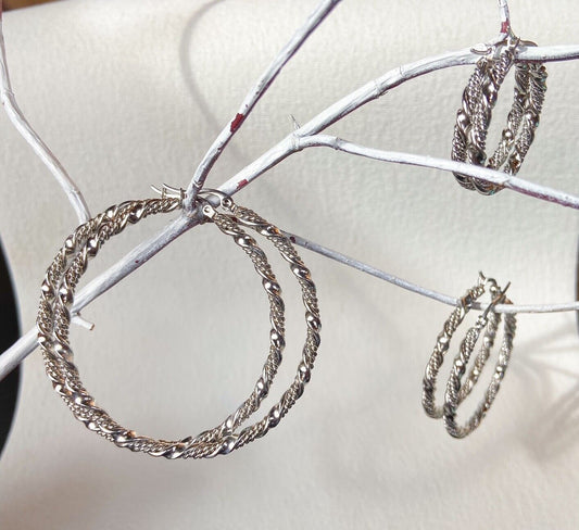 PAIR of Braided Twist Style Hoop Earrings 22g Stainless Steel