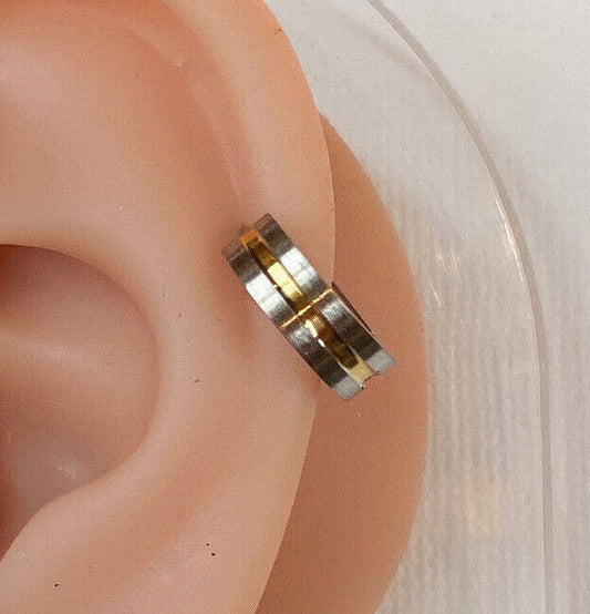 PAIR Small Hoop Huggie Earrings PVD Color Stripe Stainless Steel 20g Men / Women