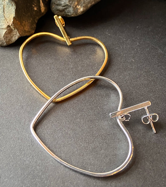 PAIR of Bar & Heart Hoop Dangle 20g Earrings Studs Stainless Steel