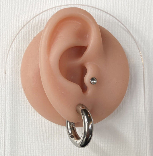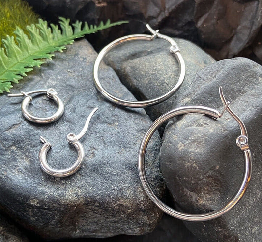 PAIR of Round Hoop Earrings Silver Color 22g 316L Stainless Steel