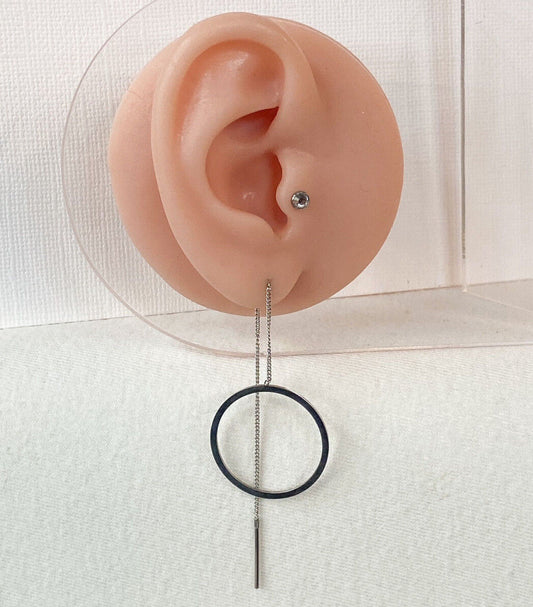 PAIR of Free Falling Chain Earrings w/ Bar & Open Circle 20g Stainless Steel
