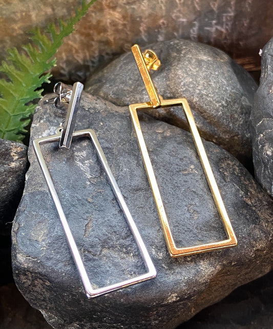 PAIR of Bar & Rectangle Dangle 20g Earrings Studs Stainless Steel