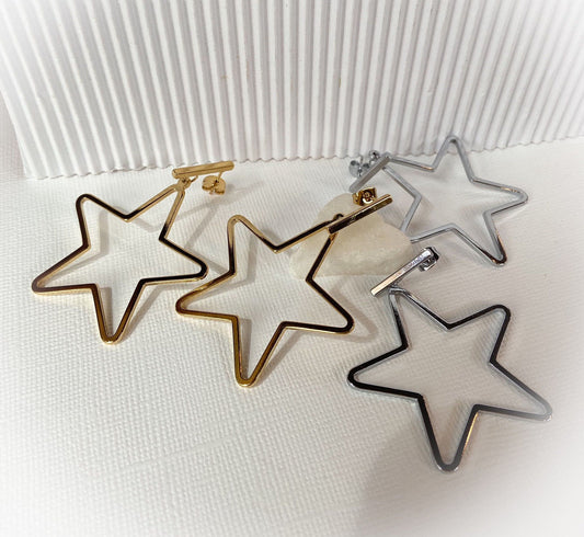 PAIR of Bar & Star Dangle 20g Earrings Studs Stainless Steel