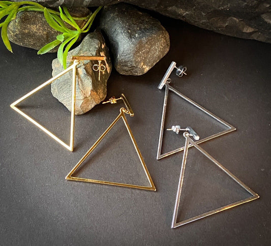 PAIR of Bar & Triangle Dangle 20g Earrings Studs Stainless Steel