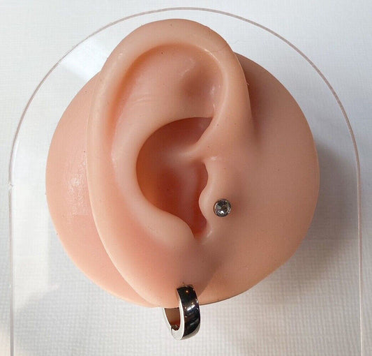 PAIR Stainless Steel Small Dome Hoop Huggie Earrings 2.5mm Wide 20g Men or Women
