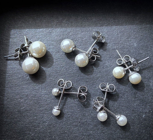 PAIR Synthetic Pearl 316L Surgical Steel Stud Earrings - choose from 3mm to 7mm