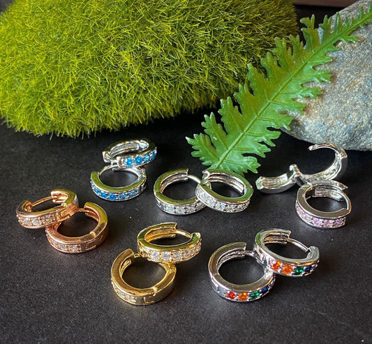 PAIR of 4mm Wide Channel Set CZ Gems Half Circle Hoop Huggies 20g Earrings