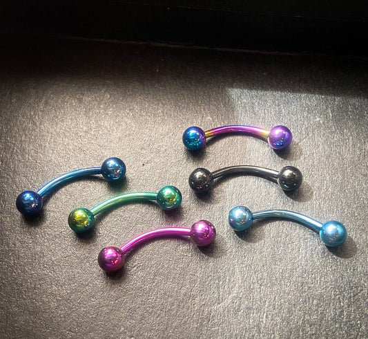 6pc Bulk Pack Titanium Ion Plated Surgical Steel Eyebrow Rings Curved Barbells