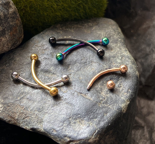 1pc Snake Eye Piercing Curved Barbell Tongue or Eyebrow Ring PVD Plated Balls