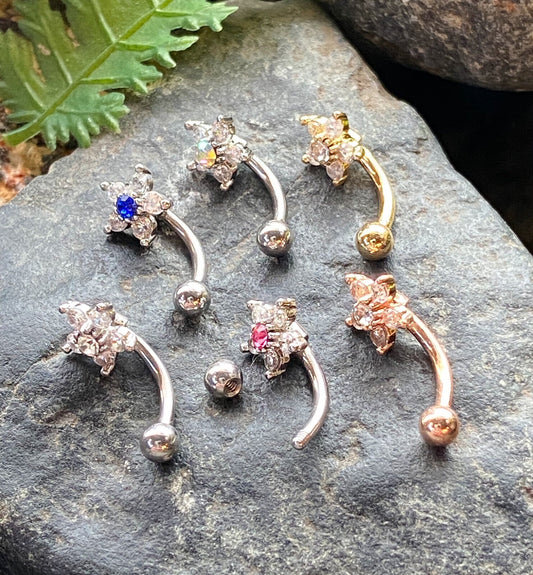 1pc Eyebrow Ring w/ Double Tier CZ Gem Flower 16g Curved Barbell 16 Gauge