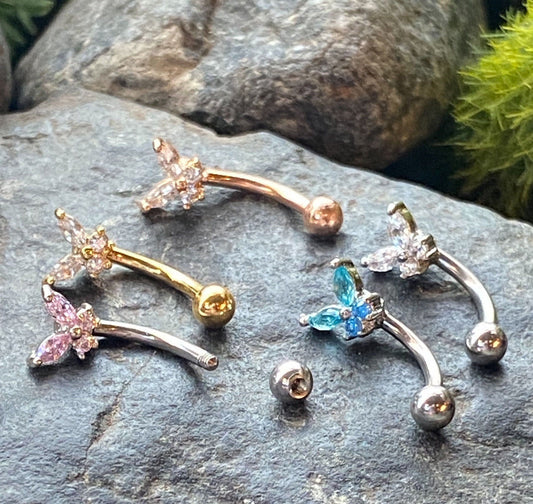 1pc Eyebrow Ring w/ Prong Set CZ Gem Butterfly 16g Curved Barbell 16 Gauge