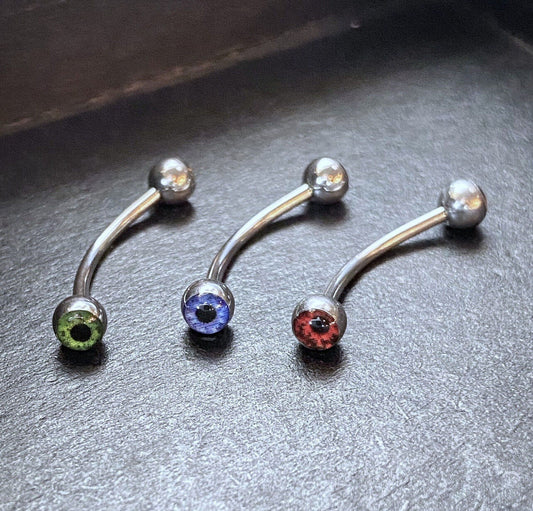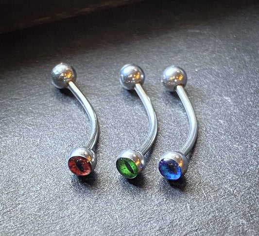 1pc Snake Eye Piercing Curved Barbell Tongue or Eyebrow Ring Eyeball Inlaid