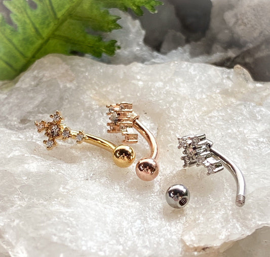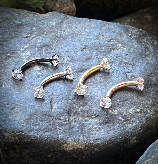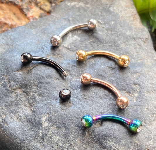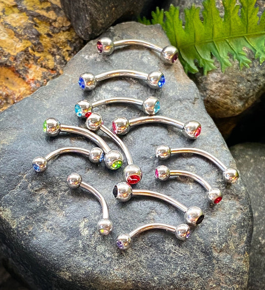 1pc Double Press-Fit CZ Gem Curved Barbell Eyebrow Ring, 14g or 16g