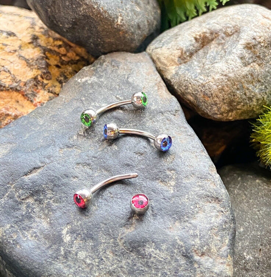 1pc Snake Eye Piercing Curved Barbell Tongue or Eyebrow Ring Double Gem 16g 9/16