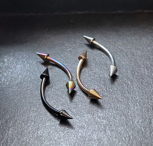 1pc Snake Eye Piercing Curved Barbell Tongue or Eyebrow Ring PVD Plated Spikes