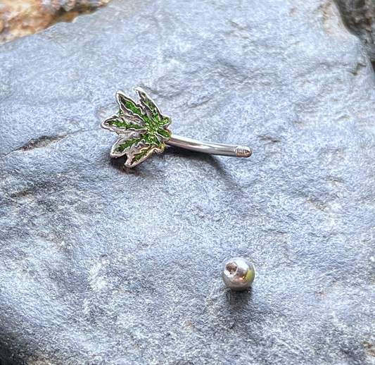 Pot Leaf Marijuana Hemp Design Eyebrow Ring 16g Curved Barbell Surgical Steel