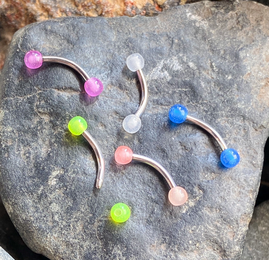 5pc Bulk Pack Glow Acrylic Balls Eyebrow Rings 16g Curved Barbell Body Jewelry